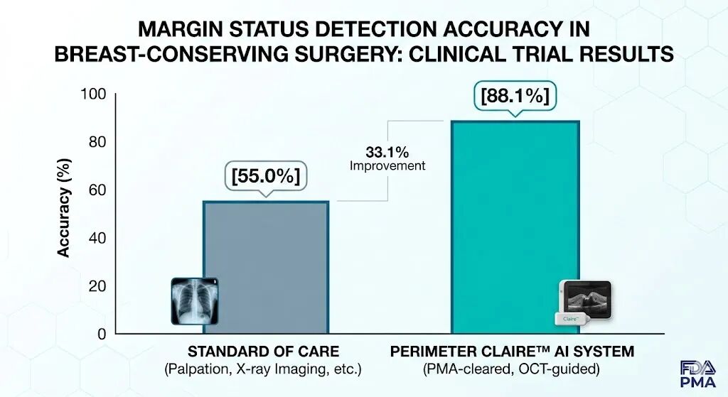 近日,Perimeter Medical Imaging AI 旗下的 AI 辅助成像设备 Claire™ 正式获得 FDA 的最终上市前批准(PMA。这不只是一款新设备的准入,更是一次范式转移:AI 正式从实验室的幻灯片,走向了分秒必争的手术台,化作医生的“第三只眼”。