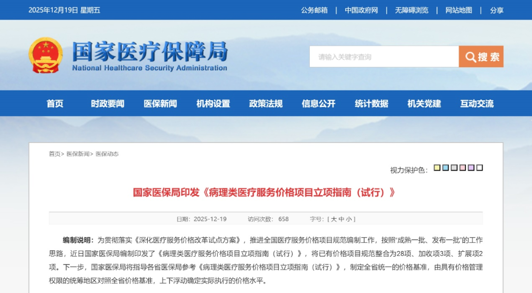 病理数智化的发展,正迎来国家政策的强力推动与支持。2025年底,国家医保局发布《病理类医疗服务价格项目立项指南(试行)》,明确提出推动病理检查规范化、提升诊断效率与质量、促进病理数字化发展的明确要求。
