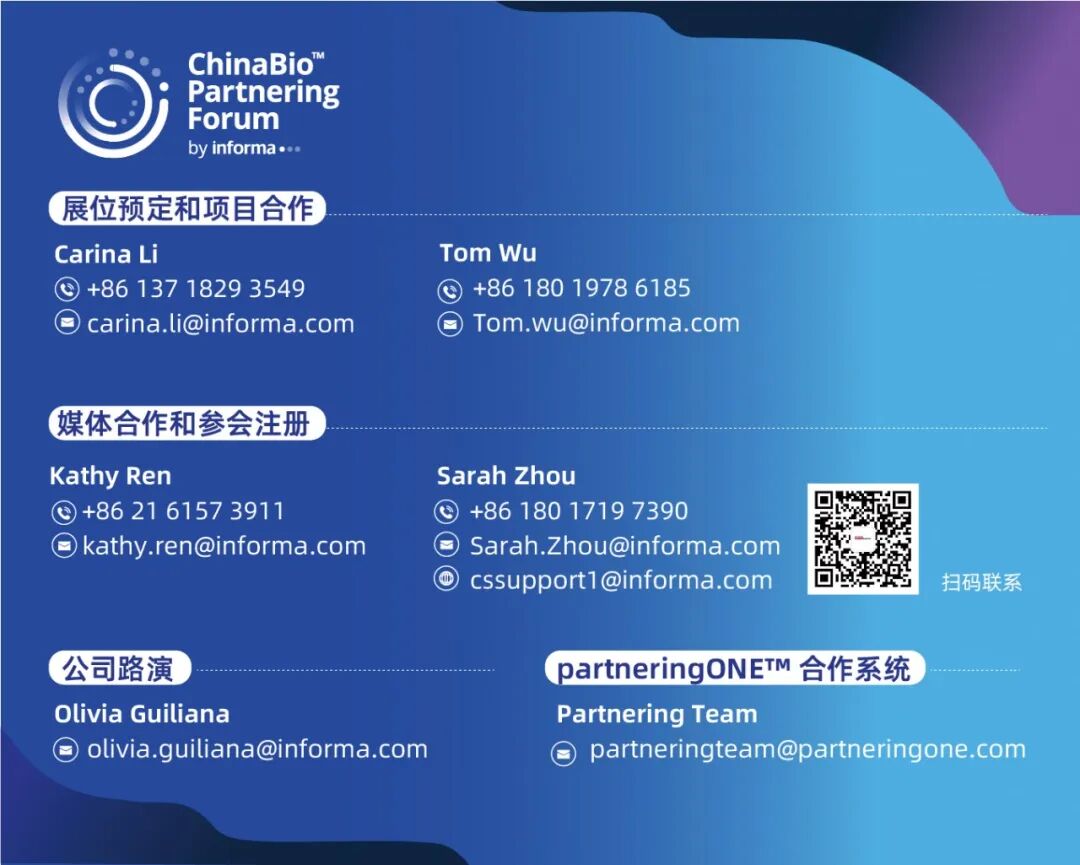 ![]() ChinaBioTM Partnering Forum 生物医药产业国际合作大会来自Informa集团,汇集全球生物制药资源,旨在促进与快速增长的中国生命科学市场展开跨境合作。作为Bio系列在国内的一站,大会2009年落地中国,已成功举办了17届。 2026 ChinaBioTM 大会将延续其一贯的高品质内容传统,聚焦全球生物医药与创新药 领域的最新突破与商业化进程,传递国际市场前沿动态,深入探索科研成果与全球市场对接的可行路径与发展机遇。 此外,本届大会全新引入两大海外知名下一代先进疗法品牌会议——Antibody & ADC Summit 与Cell & Gene Therapy Summit,旨在深度融合细分领域的前沿动态,携手全球参与者,共同构建一个更具活力、连接更紧密、合作更富成效的全球#生物医药 创新生态圈。 ![]() 为何参加? 本次会议参会人员数量创下新高,较2025年同期增长68%,25%的参会者为C级高管及以上决策层。参会人员来自27个国家及地区,包括:澳大利亚、法国、德国、以色列、日本、新加坡、韩国、瑞士、中国台湾、阿联酋、英国和美国,规模空前。 如何将规模优势转化为实际价值?以下环节助您最大化参会体验: