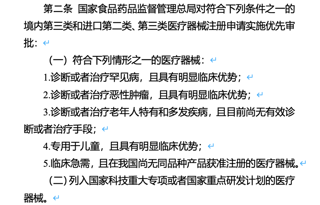 在国家药监局2016年发布的《医疗器械优先审批程序》(2016年168号)中明确列示了五种情况: