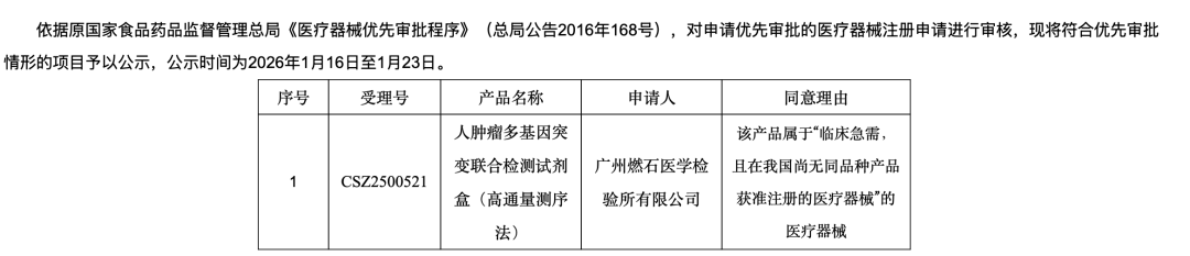 先声诊断的“人类多基因联合检测试剂盒(可逆末端终止测序法)”上榜!