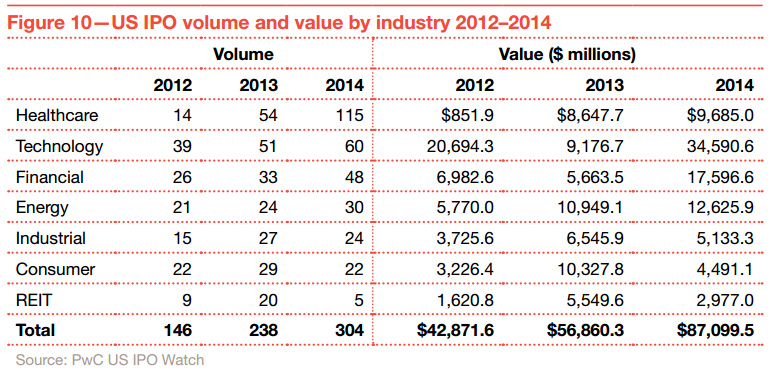 普华永道:2014年医疗健康IPO数量最多、回报率最高