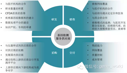 基因检测的商业模式(图片来源:生物探索) 基因检测简单来说可以划分为诊断类和预防类。诊断类的基因检测报告包括遗传缺陷基因检测、无创产前基因检测、靶向用药基因检测等。预防类包括疾病易感基因风险评估、新生儿基因检测等。对于诊断类的基因检测,一直都是市场上各大医疗机构和企业争夺的“蛋糕”。 诊断类的基因检测报告 一份诊断类的基因检测报告,普通老百姓是无法自行解读的,需要专业的医疗机构遗传咨询师或者有资质的医生来解读。例如靶向用药基因检测报告,里面出现的众多药物名称和相关基因功能说明,以及适用性、不适用性、可能适用性等说明,都需要具备专业的临床医学背景的咨询师和医师才能解读并且做出合适的诊断。 这种诊断类的基因检测报告,国家相关的政策限制也会出台,例如CFDA对于诊断的设备,卫计委对于诊断的项目,不仅如此,小编预判,相关的部门也会对于诊断类的基因检测报告进行规范和标准化,报告带来的临床诊断指导也会进一步出台技术性的规范指导。 诊断类的基因检测有风险,但是知道风险以后出现的问题,在国家相关部门的规范下,能够通过医疗机构和保险公司得到保障。 预防类的基因检测报告 针对预防类的基因检测,如果告诉普通老百姓,在知道疾病无法治愈的情况下,消费者还真的愿意知道自己患上疾病的风险吗?在新生儿基因检测上面,虽然婴儿无法为自己选择基因检测做决定,但是父母为孩子选择知道这些信息是否真的有百利而无一害呢? 如果我们撇开目前基因检测精确度和资质问题,只是看预防类的基因检测报告内容,你会发现更多的检测项目分成两个方向:一个是让消费者过渡到诊断类基因检测做好准备,比如癌症易感基因检测套餐,消费者知道的仅仅是一个“不太稳定”(为什么称为不太稳定,小编这里不细说,以后会慢慢分析基因检测的技术细节,简单来说就是消费者在不同的基因检测公司得到的检测结果会有差异)的统计学概率。得到概率的消费者接下来就被交给传统体检中心或者卖保健品买药的销售以及所谓的“基因营养师”了。 另一个方向就是通过游戏和好奇心吸引消费者进行一次性的消费,这里有一个很吸引互联网投资人的故事,那就是“先把用户圈进来,然后通过增值服务来盈利,最后利用逐步积累的大数据来建立门槛”,这个漂亮的商业模式的确让众多的投资人掏了不少钱,但是结果呢?这个看似“小而美”的商业模式小编在另一个系列的文章里面已经细细分析过了。有兴趣的看官们可以查看我们微号公众号“基因空间”或者下载APP“基因世界”浏览我写过的相关文章。 预防类的基因检测有风险,但是指导风险以后出现的问题,需要消费者自己承担。