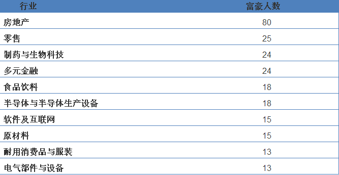 《福布斯》中文版称,2015年上榜370位华人富豪净资产总额高达11,519亿美元,华人在全球亿万富豪总人数中的占比首次超过20%。无论是上榜人数还是净资产总额都再一次延续着增长趋势,而且幅度有增无减。 2015年华人富豪行业分布前十