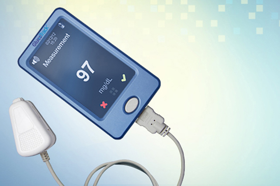 Dexcom公司推出的Dexcom G4 PLATINUM是一款微创连续监测血糖仪。它由传感器(包埋于皮肤之下)、转换器(固定于传感器之上发射无线信号)和接收器(接收并显示血糖变化信息)三部分组成。