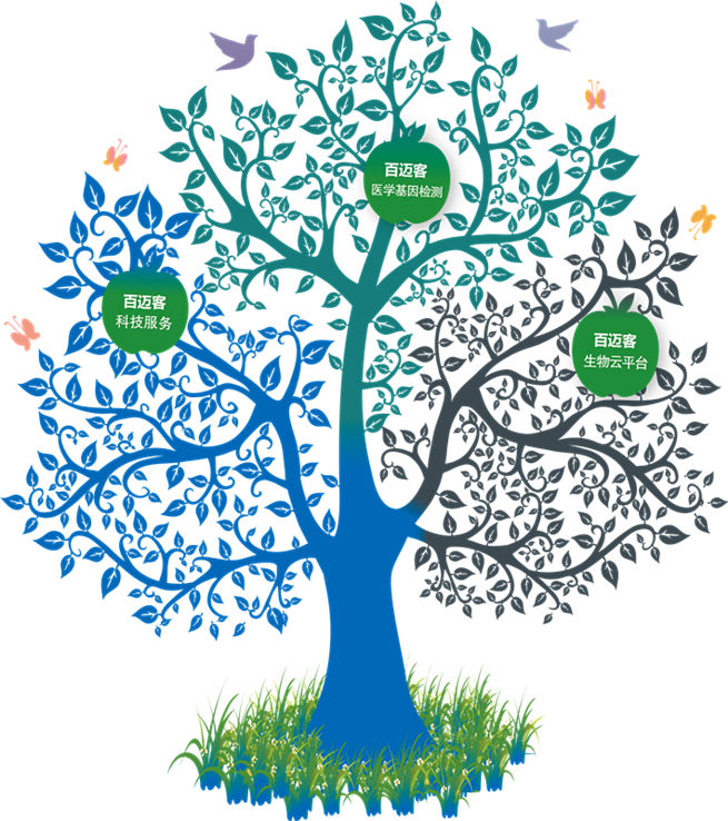 产业的发展由市场需要和技术创新共同决定。百迈客的事业围绕着基因开展,依托于NGS,但又不完全依赖于NGS。百迈客的三条业务线:科技服务、医学检测、生物云融合在一起形成了现阶段的百迈客“基因产业树”。科技服务立足技术创新,牢牢的扎根于大地汲取整个基因科技领域创新的养分,为百迈客发展提供源源不断的技术创新驱动力。在市场需求的阳光的驱动下,医学检测、生物云会茁壮成长。三条业务线相互支撑,相互渗透,共同吸收着来自大地和太阳的能量,即使“风停了”我们也能继续成长,这就是百迈客的“基因常青树”。