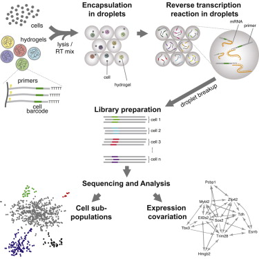 今年11月,MIT的Edward Boyden和斯坦福大学的Karl Deisseroth因他们在光遗传学领域的工作获得了表彰。光遗传学技术是指通过光线来操控神经元,科学家们一直在不断的改进这一技术。 本月前,在芝加哥举行的神经科学学会会议上,Deisseroth等人提出了全光电生理学(all-optical electrophysiology)的升级版。哈佛大学Adam Cohen和他的团队开发出了一种reporter,当引入到细胞中去时,在电压发生改变的情况下会发出红外线。Cohen与Boyden一起,将电压指示器与一种响应蓝光的膜通道一起导入到了细胞中,这使得研究人员能够用蓝光开启细胞,用红外线记录它们的活动。 Natural light-gated anion channels: A family of microbial rhodopsins for advanced optogenetics. Science. [文献] 今年6月,发表在《科学》杂志上的一项研究中,研究人员在海藻中发现了一种紫红质通道蛋白(channelrhodopsin),与先前开发的工程通道相比,它能够更快地抑制神经元活动。科学家们还开发出了一种对在光遗传学控制下神经元作出即时反馈的方法,维持它们的活性在一个理想的状态。这一“神经恒温器”(neuro thermostat)可在24小时内控制细胞的firing rate常数。 单细胞分析 Droplet Barcoding for Single-Cell Transcriptomics Applied to Embryonic Stem Cells. Cell [文献] Highly Parallel Genome-wide Expression Profiling of Individual Cells Using Nanoliter Droplets. Cell [文献]