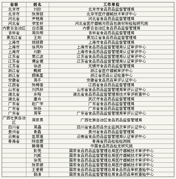 第一批国家医疗器械检查员名单