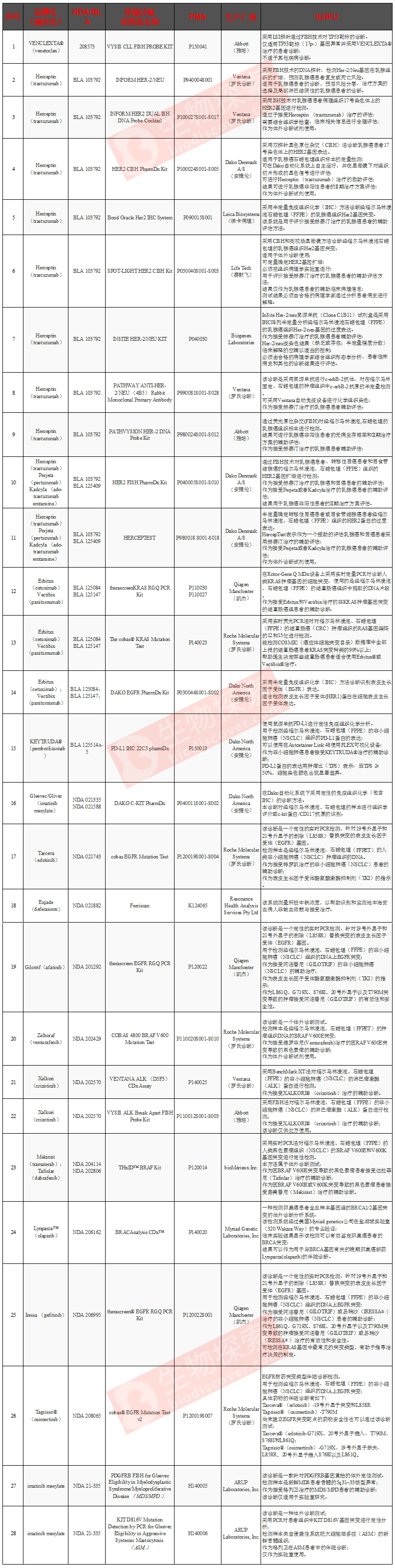 ![]() 伴随诊断之路及必要性 伴随诊断(Companion Diagnostics,简称CDx)之路始于1998年FDA批准的抗癌药物赫赛汀。 以罗氏的Zelboraf为例,黑色素瘤患者每月的药物治疗费用约为9400美元(112,000美元/年),而进行一次BRAF-V600的基因变异检测,花费还不到200美元. 因此,比起盲目服用高昂的药物以及忍受冗长的治疗周期,伴随诊断技术有助于快速判断抗癌药物方案是否适合具体的患者。 伴随诊断是个性化医疗中不可或缺的工具 肿瘤学研究中基因生物标记物的发现及其后续应用为靶向治疗的开发和选择铺平了道路,同时将基因与疾病状态、预后以及最终更有效的治疗联系在一起。 ![]() 随着个性化医疗(Personalized medicine,又称精准医疗)如火如荼地发展,将患者分成不同的组,根据他们的基因组信息来定制疗法或产品成为一种新的趋势,伴随诊断检测是其中的工具之一。 ![]() 根据美国FDA的定义,伴随诊断具有以下几层涵义: 1)确定哪些患者最有可能受益于特定的治疗产品; 2)确定哪些患者可能因治疗而发生严重的副作用; 3)监控治疗反应,以便调整治疗,使安全性和有效性得以改善。 ![]() 根据目的/用途划分的伴随诊断类型 FDA批准的28款伴随诊断产品 目前,FDA已经批准了一些伴随诊断检测。这些检测由罗氏、雅培、QIAGEN、DAKO等公司推出,主要利用qPCR、原位杂交、免疫组化等方法筛查一些肿瘤相关突变,以协助医生选择适当的疗法。本文盘点了FDA批准的28款伴随诊断产品。 ![]() 备注:NDA指新药申请(New drug application);BLA指生物制剂许可申请(Biologics license Application);PMA指上市前申请许可(Pre-Marketing Application);IU指预期用途(Intended Use );IFU指使用适应症(Indications for Use)。 展望:伴随诊断,体外诊断市场发展最快的领域 ![]() 伴随诊断是一个新兴市场,调查显示,目前该领域中大多数企业正与制药公司合作,为其pipeline药物开发伴随诊断试剂盒。作为个性化治疗的一个重要方面,对于预测患者针对特定药物的治疗反应至关重要。随着百姓不断提高的警觉意识及不断升高的癌症发病率,伴随诊断将成为靶向性治疗方法的一个重要因素。 |