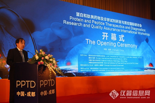 2016年6月1日,在国际检验医学溯源联合委员会(JCTLM)的指导下,由国际计量局(BIPM)、中国计量科学研究院(NIM)和中国食品药品检定研究院(NIFDC)主办、成都市人民政府联合主办,中国分析测试协会(CAIA) 承办、全国临床医学计量技术委员会协办的“蛋白和肽类药物及诊断试剂研发与质控国际研讨会(PPTD)”在四川省成都市香格里拉大酒店胜利召开。国家质量检验检疫总局和国家食品药品监督管理总局给予本次会议极大的支持。 共有来自国际计量局、国际检验医学溯源联合委员会、世界卫生组织、国际临床化学联合会、欧盟标准物质与测量研究院等国际组织,美国、德国、英国、日本、韩国等十一个国家的三十余名国际代表,以及来自中国科学院、中国工程院、数十家大学、研究所及企业的450余名国内代表参加此次研讨会。仪器信息网编辑有幸参与盛会并进行报道。