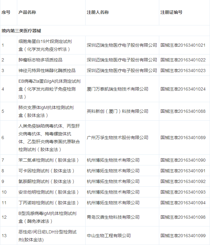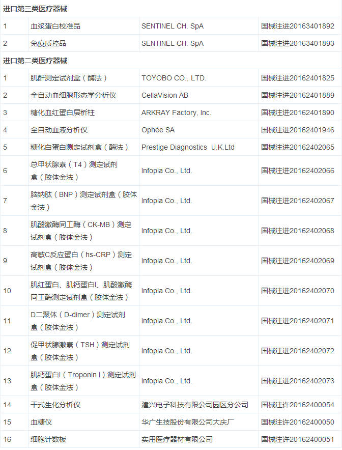 6月16日,国家食药监总局发布了《总局关于批准注册医疗器械产品公告》(2016年第117号)在公告中显示:国家食品药品监督管理总局五月份