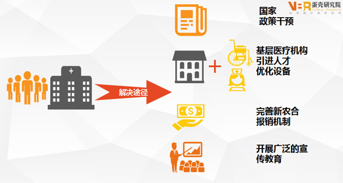 目前面临的问题及解决方法 长期以来,我国形成了患者选择医院和医生的就医模式,且由于城乡之间就医资源差距较大,随着居民收入的增加,经济条件好的患者均形成了无论大病或小病均去市级及以上医院诊治、寻求名医诊治的诊疗习惯。为了追求一定的经济效益,省市级医院凭借相对丰富的资源和技术优势来治疗大病和小病,医院的两极分化也由此逐渐产生。大医院门庭若市,小医院门可罗雀。大医院上大规模、买精设备、扩床位,越来越多的患者前往大医院看病,“虹吸”患者的现象越来越严重。医院与患者在很长一段时间内运行着这样的就医模式,顽固的就医习惯不易在短时间内改变。