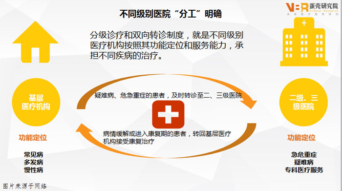 一、分级诊疗制度的背景 近年来,随着社会经济的发展与进步,我国正在经历着人口老龄化、城镇化的过程,居民基本健康需求增长迅速并呈现多样化的特点,给基本医疗卫生服务体系的建立与完善带来了挑战,主要体现在现有医疗服务体系布局不完善、优质医疗资源不足和配置不合理,不能有效满足激增的预防、治疗和康复、护理等服务需求。 据数据显示,目前我国80%的医疗卫生资源集中在城市,其中80%又集中在大中型医院,呈“倒三角”的资源结构,而医疗卫生服务的需求大部分在基层,呈“正三角”的需求结构。医疗资源的倒三角与医疗需求的正三角导至了看病难,而分级诊疗能有效解决这个难点,同时能控制小病大治的不良现象,与医药分开等政策结合控制医保费用。