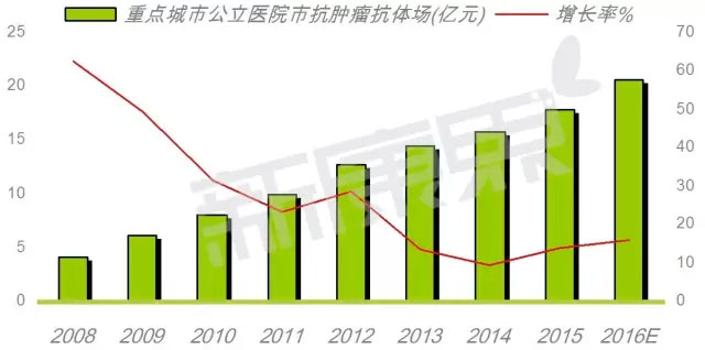国内抗肿瘤单抗10大药物 数据显示,2016年国内重点城市公立医院使用的抗肿瘤单克隆抗体药物市场超过20亿元,同比上一年增长率为15.98%。TOP10的品种是罗氏的利妥昔单抗、曲妥珠单抗和贝伐珠单抗、勃林格殷格翰公司的西妥昔单抗、百泰生物的尼妥珠单抗、先声的人血管内皮抑制素、上海三维的重组人5腺病毒、上海赛达生物药业的重组改构人肿瘤坏死因子、深圳赛百诺的重组人P53腺病毒、成都华神的碘(131I)美妥昔单抗。