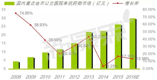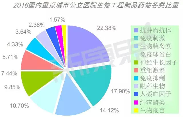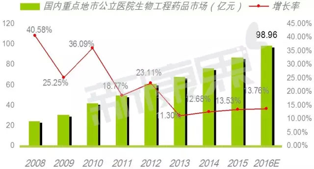 根据汤森路透最新数据,全球目前已获批及进入Ⅲ期临床研究的抗体类药物共有243个,其中121个品种已经获得美国FDA的批准,占创新生物抗体药物的74.23%,预计2016年全球抗体类药物市场已超过1000亿美元的规模。在抗体类药物专利期满后,生物仿制药已是近年来医药界的热点,呈现出群雄逐鹿的态势,从而带动了国内外医药市场再创新高。 据CFDA数据显示,其批准的生物大分子药物“国药准字S”批文已有1653张,95%以上的品种已投入市场。具体到抗体类药物,从各大终端来看,城市等级医院单抗药物的销售规模占整个市场近90%,预计2020年中国单抗市场规模可达280亿元,行业复合增速达到30%。 生物大分子药市场超1000亿元 据最新数据显示,2016年1~9月,国内重点城市公立医院生物大分子药物用药金额为72.71亿元,预计全年用药金额为100亿元,同比上一年增长了13.76%。专家预计2016年中国生物大分子药物制品总体市场已超过1000亿元规模,占据国内药品市场的9.16%。在生物大分子药物市场中,包括了抗肿瘤生物工程类、免疫抑制生物类、免疫刺激生物类、眼科生物工程制剂、纤溶酶类生物制剂、人凝血因子、神经生长因子、生物重组激素、生物胰岛素、生物疫苗和免疫球蛋白等11个亚类。