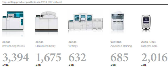 表2. 诊断业务各板块财务数据 (单位:百万瑞士法郎) 诊断业务最畅销产品如下图所示: