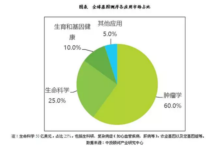 ![]() 中国基因检测行业发展特点 中投顾问发布的《2017-2021年中国基因检测行业投资分析及前景预测报告》表示,基因检测在我国的发展随着技术手段的进步正在越来越快速,其发展现状可以通过国内最大、最规范的几家基因公司的发展状况来反映。中国的基因公司数量众多,但实力强大的主流公司只有华大基因、贝瑞和康、安诺优达、达安基因(002030)、诺禾致源、百迈克、凡迪生物等,数量不超过十家。在1999年,基因产业又添新成员--华大基因公司,该公司的核心人物全部来自人类基因组的中国部分。目前员工数量超过5000人,最近几年公司的收入规模已经达到10亿元级别。该公司业务范围广泛,几乎囊括了其余公司的所有业务种类。而行业中其他各基因公司所涉及的业务范围都没有明显差异,他们主要靠的科技服务和医学服务的收入起家。华大基因公司业务涉及面广,主要包括无创产前基因检测、辅助生殖、单基因病、新生儿筛查、肿瘤个体化治疗、遗传性肿瘤筛查、心血管病筛查、血液病筛查等项目。无论从测序仪器还是人才储备来说,都是中国基因检测行业的老大。而同行中贝瑞和康的业务主要集中在无创产前基因检测技术和科技服务,很少涉及其他领域,在中国无创产前基因检测技术这个行业中只有华大基因的市场占有率高于贝瑞和康。 目前国内基因检测行业发展有如下特点: (一)推出了自己的测序仪,逐步打破了国外的垄断 世界测序仪市场很长时间是由Illumina和LifeTech这两家美国公司垄断的。2013年的测序仪市场份额的91%被这两家美国公司所占有。其中Illumina占比达到53%,LifeTech占比38%。而现在Illumina、LifeTech两家公司在市场上的的垄断情况正在被中国自己的测序仪逐步打破。美国基因检测仪公司CompleteGenomics(下称“CG”)于2013年3月被华大基因收购了。其中测序仪是由华大基因子公司华大制造负责生产制造,他们正在推出不同型号和不同用途的产品。目前基因检测设备的国产化问题已率先得到了解决,而且,该公司生产的基因检测设备比较便宜,价格仅仅是进口设备的1/3到1/6。目前测序仪全球分布的热点区主要在中国的深圳(主要是华大基因),南欧,西欧和美国。 华大基因测序仪BGISEQ-1000,BGISEQ-100已经上市,一定程度上削减了Illumina、LifeTech公司的份额。在国内,除华大基因外,诺禾致源公司也具备生产基因测序仪的资质。同时,也不乏有些公司合作生产适合中国市场的测序仪,其中就包括达安基因与LifeTech合作、贝瑞和康与Illumina合作等。这一系列举措使美国在国际测序仪市场上的垄断地位受到了来自中国的巨大挑战。 此外,国外公司对该产业上游包括的与基因测序相关试剂、耗材、软件等并没有形成垄断,国内厂家完全有实力生产其中的一些试剂、耗材。而与之相关的软件开发更是中国的强项。 (二)市场:从无创产前检测技术向肿瘤、心脑血管过渡 继无创产前测序竞争开展数年后,国内的多家基因公司开始进入肿瘤市场,除华大基因外,安诺优达、诺禾致源等体量较小的公司也开始布局肿瘤市场。目前中国市场上涉及肿瘤种类最为全面的肿瘤套餐正由华大医学推向市场,该套餐的目标客户既包括健康人群、高危人群,也可辅助治疗、预后监控。 安诺优达与华大医学不同,该公司不追求肿瘤覆盖种类,在发展初期,安诺优达专攻乳腺癌、卵巢癌等,因为这是女性易发肿瘤,并力求把这几种肿瘤的检测、解读做精、做细,从而形成差异化竞争。 诺禾致源甚至放弃了无创产前市场而将所有精力集中于肿瘤测序。在无创产前市场位居第二的贝瑞和康在2014年7月公布“无创单基因疾病检测方法”,涉及到肿瘤领域,只是称“该方法对肿瘤检测领域同样具有广阔的应用前景”但在肿瘤测序方面尚不明朗。上市公司达安基因则于2012年推出了“TM15检测”,该产品定位于早期筛查,并未涉及个体化治疗。随着基因测序技术的不断发展,下一个较为成熟的产品应该是心脑血管基因测序,现在人们的生活方式和生活节奏,心脑血管疾病患者数量成递增趋势,该疾病的致死致残率并不低于肿瘤,要想收到良好的效果做到提前预防、早期发现是很有必要的。猝死预测是心脑血管基因测序包括的诸多产品之一,但目前各公司都未披露具体项目。 国内各公司中,种类较多、技术较为成熟的还是属于华大基因的心脑血管基因测序产品。 以心源性猝死为例,在国内首屈一指的当属华大基因子公司华大医学,该公司可对5种与心源性猝死疾病相关的54个基因进行解读。 中国基因检测市场现实需求 (一)临床医疗是目前基因测序主要应用领域之一 中投顾问发布的《2017-2021年中国基因检测行业投资分析及前景预测报告》表示,基因测序目前可应用于医疗领域和非医疗领域。医疗领域的应用领域主要有生殖健康、遗传病检测、新药研发、肿瘤诊断及治疗、心血管疾病以及医学基础研究,其中生殖健康、肿瘤诊断及治疗、新药研发和医学基础研究是目前最主要的应用领域。基因测序在非医疗领域的应用主要有环境污染治理、生物多样性保护、食品及中药材同源鉴定、农牧业育种及司法鉴定等。 ![]() (二)生殖健康领域产品相对成熟,市场仍有较大发展空间 基因测序技术在生殖健康领域的应用可分为胚胎植入检查、产前检查和新生儿疾病筛查。基因测序技术在生殖健康领域的应用较
