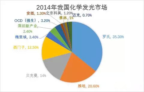 目前国内化学发光90%市场被进口厂家垄断,前4家占80%以上的份额。 化学发光2014年仪器(管式发光)保有量约2万台,新增约5000台 早期化学发光以板式为主,市场占有率前三的国产品牌分别是安图、科美和新波(被铂金埃尔默收购)。 2011年新产业的Maglumi2000是真正意义的全自动管式化学发光仪,上市后迅速占领市场,目前是国产装机量最多,销售额最大的化学发光厂家,其装机数量在2014年已经赶超罗氏。